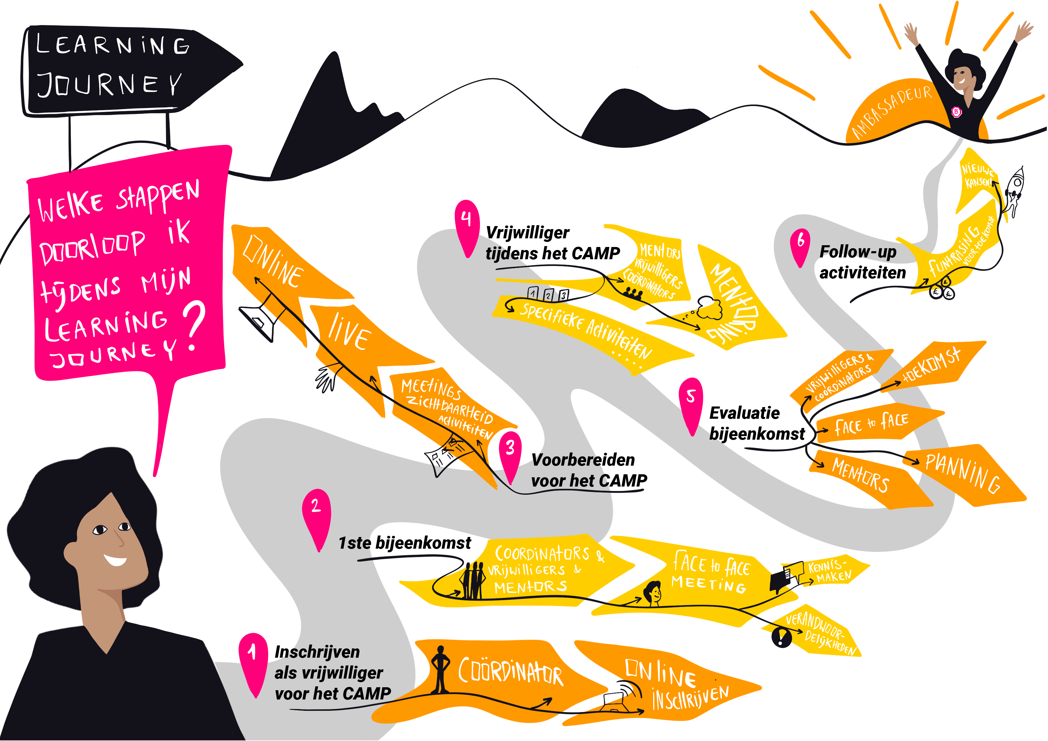 We hebben gekeken naar welke belangrijke dingen Robin kan ervaren in ons jeugd- en jongerencentrum, en hoe deze kunnen leiden tot vaardigheden en een houding die haar veranderen van Robin de Bezoeker naar Robin de Ambassadeur van Vrijwilligerswerk.